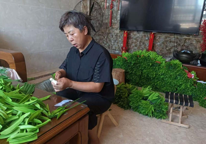 图为村民在家中加工工艺花卉陈鹏旭/摄